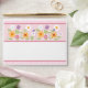This cute envelope features a pretty floral pattern with rickrack on the front, pink stripes on the inside flap, a cute flower and bird on the back flap, and a personalised name and return address. This design is simple and feminine, and it will be perfect for birthday party invitations, baby showers, and new baby announcements. Modify the text to fit your needs.