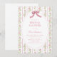 The invitation is adorned with a stunning grandmillennial floral stripe pattern of watercolor flowers in soft hues of green and light pink. At the top of the design is an enchanting illustration of a cute rose pink bow. This whimsical element adds a playful and delightful touch, embodying the joy and warmth of a tea party gathering.