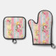 Pink Floral Striped Oven Mitt & Pot Holder Set
