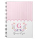 Add a feminine touch to your daily work with this pretty spiral notebook that features delicate pink and peach coloured flowers, a pink pinstripe pattern, a trendy scalloped edge border, cute birds, and a customisable monogram. Modify the initial and name to create a one-of-a-kind gift for family, friends, coworkers, or students. Whether you use it to jot down notes, track homework assignments, sketch, or journal, this notebook will make a perfect addition to your workspace or school bag.
