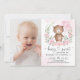 Pink Floral Teddy Bear Girl 1st Birthday Party Invitation