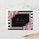 Faux glittery Pink Floral black and white stripes Thank You Postcard