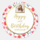 Pink Floral Tulips, Add Photo, Happy Birthday Classic Round Sticker