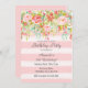 Birthday invitation with pink roses design and pink stripes watercolor background.