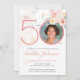 Pink Floral Watercolor Custom Photo 50th Birthday Invitation
