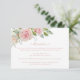 Delicate pastel blush pink watercolor roses with pale green foliage printed on a wedding enclosure card with rose pink text. Delightfully elegant and romantic this card has an easy to edit template where you can add your Reception and Directions information. The pink text is colour hex code #E0A4A3. Pink Floral Wedding RSVP Response Card .