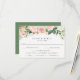 Elegant watercolor floral and foliage arrangement in trendy shades of green, white, rose gold, blush and petal pink with solid sage green colour backing, wedding RSVP cards with meal choice option. You are able to customise the text font style, colour, and size.