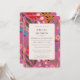 Save the Date invitation with bold and colourful flower pattern. Pink, red, orange, blue and purple. Vibrant floral art.