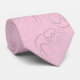 A formal neck tie featuring a classy floral motif in silver on trendy pink.