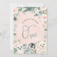 Cute snow much fun to turn one winter onederland themed birthday invitation featuring four cute winter animals, foliage or greenery and some pink flowers. The design also features a faux silver glitter word and snowflakes. This invitation is ideal for an winter onederland themed animals birthday party.