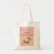A tote bag with a floral rose bouquet with white and pink flowers. A faux diamond tiara. Background is pink with a floral pattern. Pretty and elegant design.