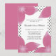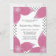 Elegant Bridal Shower white invitation with chic black dots and decorative pink floral front, includes lovely solid pink back of card.