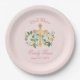 Pink Floral with Gold Cross Baptism Paper Plate