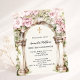 Pink florals arch girl First Communion invitation