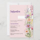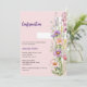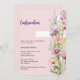 A blush pink background, with a large white cross decorated with pink and purple flowers. Personalise and add the name and details details.