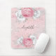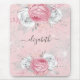 Pink florals silver monogram script mouse pad