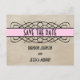 Elegant and classy Flourish Border Save the Date Postcard featuring a vintage look background and a fancy swirl and light pink stripe border. This stylish design is the perfect choice for announcing your vintage deco chic inspired wedding. Easy to customise, simply add your wedding details in the text fields provided. Click "Customise It" to find more personalisation options.