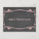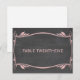Elegant and trendy Flourish Chalkboard Table Number Postcard featuring a chalkboard look background and a fancy swirl and leaf art deco border in light pink. Easy to customise, simply add the appropriate table number(s) in the text field provided. Click "Customise It" to find more personalisation options.