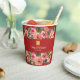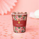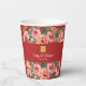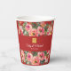 Pink flower background double happiness symbol paper cups