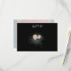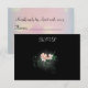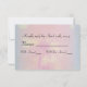 A classy and elegant wedding rsvp. The front has an illustration of some delicate pink blossoming flowers with green swirlies and leaves on a black background with some light grey shading around the flowers to accentuate and illuminate. The back has an image of some faded pink daisies with a misty pink background.