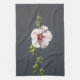 Pink Flower green leaves on dark grey Mallow Tea Towel
