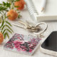This keychain has a picture of pink flowers on it.