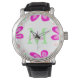 Pink flower monogram add name letter green leaf watch