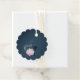 beautiful pink flower and navy blue leaves botanical favour tag.