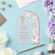 Pink Flowers and Butterflies Arch Baptism Acrylic Invitations