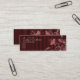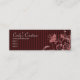 Trendy skinny business card design of pink abstract flowers on a dark pink and black striped background with white text. Customisation is easy.