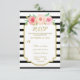 Pink Flowers Gold Black White Stripes Wedding RSVP Card