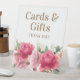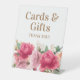 Cute, girly, and elegant blush pink watercolor floral with glittery gold accents on white birthday party pedestal Cards and Gifts sign.