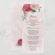 Beautiful romantic wedding menu card featuring pink and dusty rose flowers and some green leaves .
