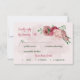 Beautiful romantic wedding response card featuring pink and dusty rose flowers and some green leaves .