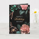 Pink flowers green leaves golden elements birthday Card