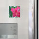 The original photograph by MaeFlowers on this brightly coloured Magnet shows pink flowers against green leaves, with a touch of light blue sky showing through. Makes a lovely little Mother's Day gift.