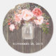Pink Flowers Mason Jar Rustic Wedding Classic Round Sticker