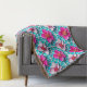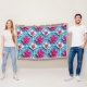 Pink Flowers on a Geometric Blue Background Throw Blanket