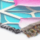 Vibrant repeating floral pattern featuring pink flowers on an intricate geometric blue background. A dynamic blend of beauty and symmetry perfect for designs, textiles, and creative projects.