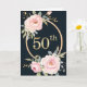 Pink Flowers on Black 50th Wedding Anniversary Card
