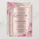 Pink Flowers Rose Gold Glitter Frame Crown Invitation