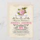 pink flowers & typography bridal shower invitation