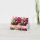Lovely wedding Thank You card done with a photograph of a pretty grouping of pink flowers. A pink band runs across the bottom and has gold tone graphic text reading Thank You. Black text inside is ready to personalize to read what ever you wish. Lovely card from the newly wed couple.