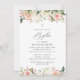 Invite friends and family in style and set the tone for your special day with this elegant baptism invitation. Design features pink and white watercolor flowers and greenery on white background.