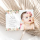 Invite friends and family in style and set the tone for your special day with this elegant baptism invitation. Design features pink and white watercolor flowers and greenery on white background.