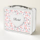 Pink Flowers White Heart Girly School Metal Lunch Box