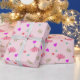 Fun pink flower pattern with colourful hearts on blush pink background.
