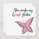 A stylish valentine's day card featuring a delicate pink butterfly. "You make my heart flutter"