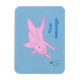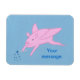 Painting of a pink flying pig with a wand making blue stars, with a placeholder for your message, printed on flexible magnets.
