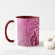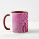 This pretty pink coffee mug features a close-up photograph of a pink foxglove petal. The photo was taken using macro photography for a detailed result showing the amazing colours and textures of this beautiful and often overlooked flower. The design is shown on a red and white ringer style mug, but is also available on other styles and colours of mugs, including beautiful frosted glass mugs.